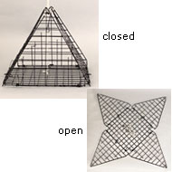 Traps are generally baited in the center and lowered to the bottom of the lake, river, bay or sea and allowed to sit for 15 to 20 minutes. As they are pulled to the surface to check, the doors or sides of the trap close up, capturing the crabs inside. Shown here is a star trap, although they come in many varieties including boxes, triangles, and flats that fold up like a taco. |